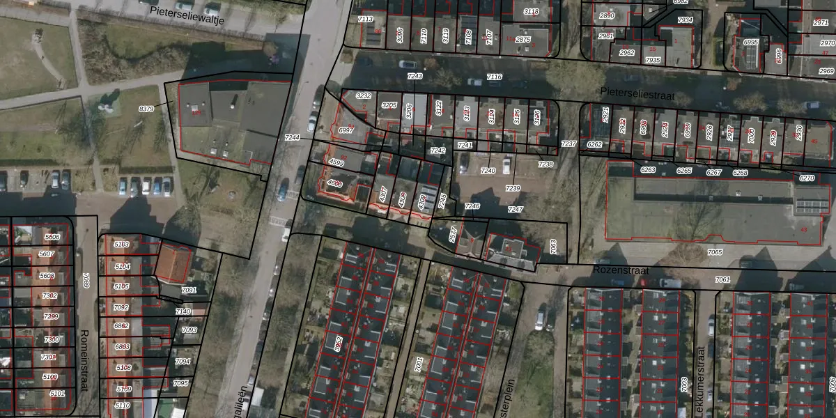 Het perceel waarop Rozenstraat 5 staat heeft een oppervlakte van 82 m². Dit is een klein perceel. De perceeloppervlakte wordt geregistreerd door het Kadaster. Gedetailleerde informatie over de maten van dit perceel kunt u vinden in het rapport Kadastrale kaart met maatvoering van Rozenstraat 5.
