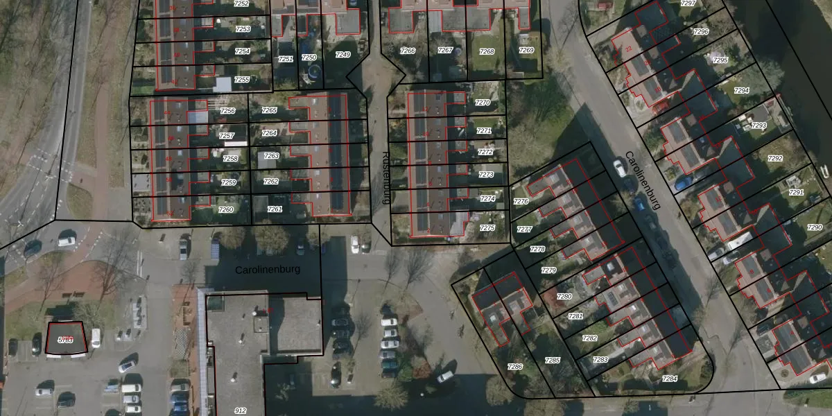Gebruik de zoekbalk of klik op een perceel voor informatie over de adressen binnen dit perceel.