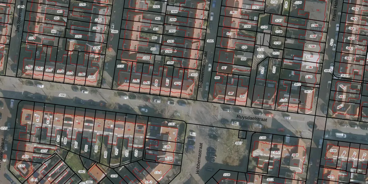 Het perceel waarop Ruysdaelstraat 18 staat heeft een oppervlakte van 143 m². Dit is een middelgroot perceel. De perceeloppervlakte wordt geregistreerd door het Kadaster. Gedetailleerde informatie over de maten van dit perceel kunt u vinden in het rapport Kadastrale kaart met maatvoering van Ruysdaelstraat 18.