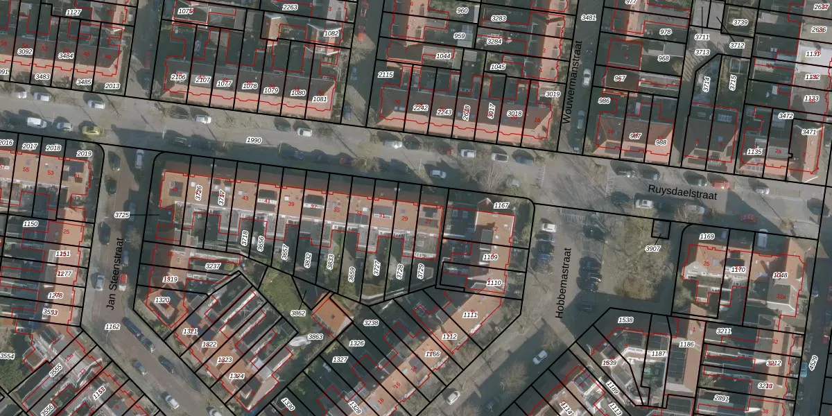 Het perceel waarop Ruysdaelstraat 29 staat heeft een oppervlakte van 155 m². Dit is een middelgroot perceel. De perceeloppervlakte wordt geregistreerd door het Kadaster. Gedetailleerde informatie over de maten van dit perceel kunt u vinden in het rapport Kadastrale kaart met maatvoering van Ruysdaelstraat 29.