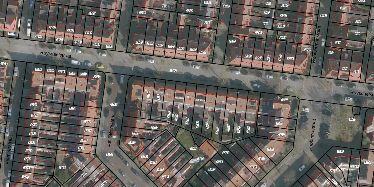 Het perceel waarop Ruysdaelstraat 39 staat heeft een oppervlakte van 138 m². Dit is een middelgroot perceel. De perceeloppervlakte wordt geregistreerd door het Kadaster. Gedetailleerde informatie over de maten van dit perceel kunt u vinden in het rapport Kadastrale kaart met maatvoering van Ruysdaelstraat 39.