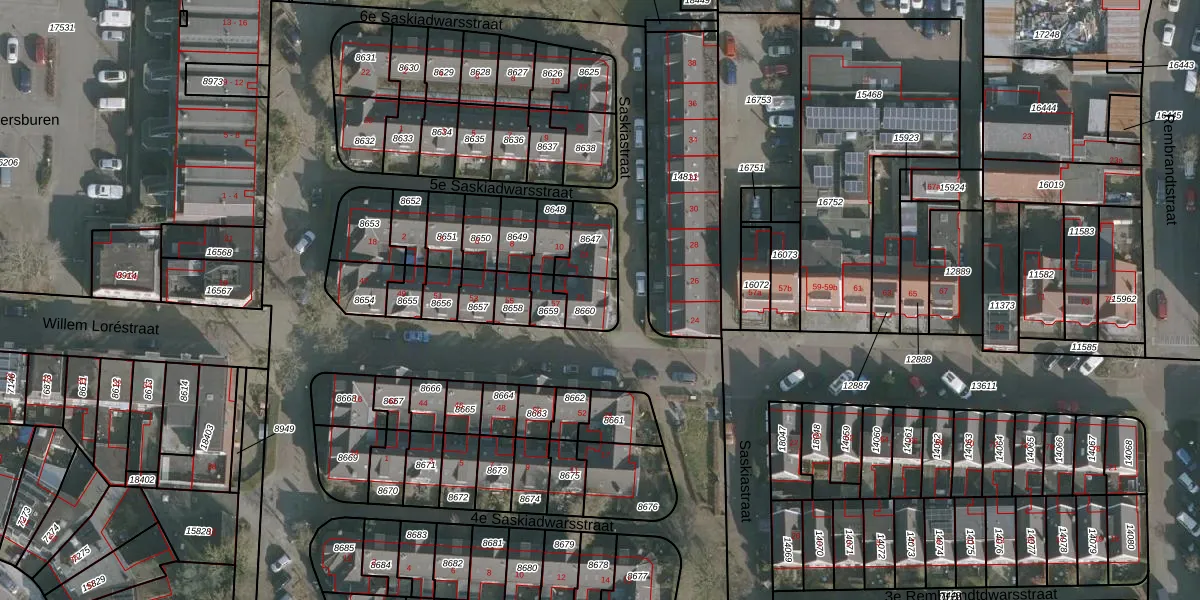 Het perceel waarop Saskiastraat 21 staat heeft een oppervlakte van 81 m². Dit is een klein perceel. De perceeloppervlakte wordt geregistreerd door het Kadaster. Gedetailleerde informatie over de maten van dit perceel kunt u vinden in het rapport Kadastrale kaart met maatvoering van Saskiastraat 21.