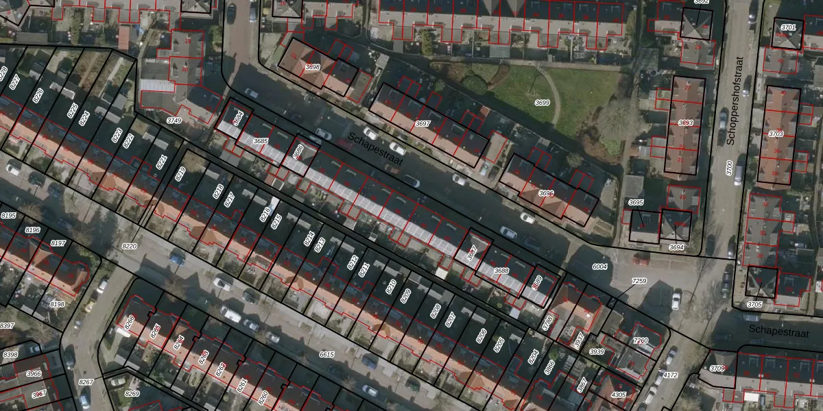 Het perceel waarop Schapestraat 38 staat heeft een oppervlakte van 2609 m². Dit is een zeer groot perceel. De perceeloppervlakte wordt geregistreerd door het Kadaster. Gedetailleerde informatie over de maten van dit perceel kunt u vinden in het rapport Kadastrale kaart met maatvoering van Schapestraat 38.