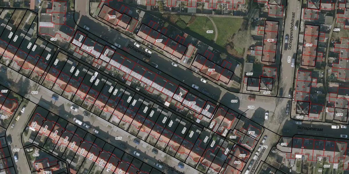 Het perceel waarop Schapestraat 42 staat heeft een oppervlakte van 2609 m². Dit is een zeer groot perceel. De perceeloppervlakte wordt geregistreerd door het Kadaster. Gedetailleerde informatie over de maten van dit perceel kunt u vinden in het rapport Kadastrale kaart met maatvoering van Schapestraat 42.