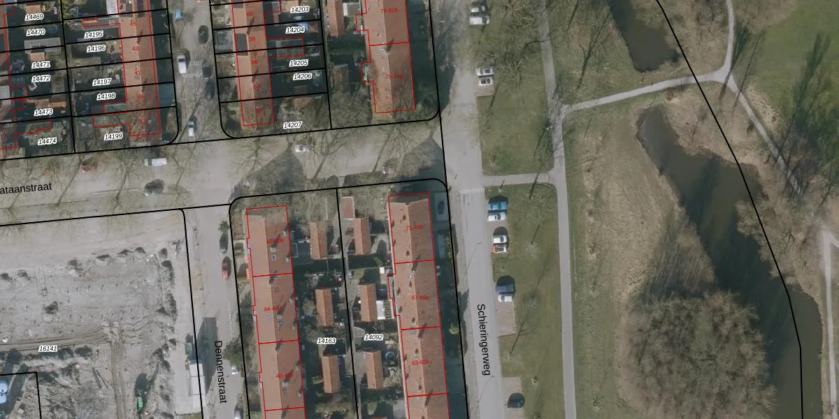 Het perceel waarop Schieringerweg 73 staat heeft een oppervlakte van 2264 m². Dit is een zeer groot perceel. De perceeloppervlakte wordt geregistreerd door het Kadaster. Gedetailleerde informatie over de maten van dit perceel kunt u vinden in het rapport Kadastrale kaart met maatvoering van Schieringerweg 73.