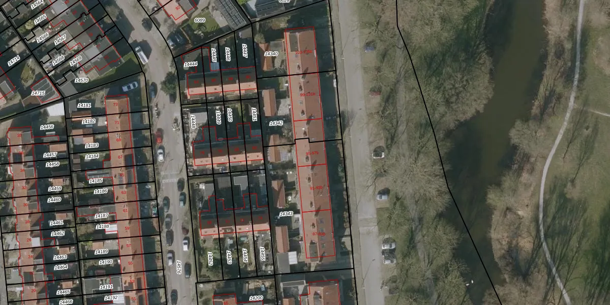 Het adres is gelegen op perceel 14343 in de sectie G en de kadastrale gemeente Leeuwarden. De kadastrale aanduiding is aldus LWD00-G-14343. Het perceel is kleiner dan gemiddeld in Leeuwarden. Het perceel is 1116 m² groot, terwijl het gemiddelde ligt op 1524,45 m². Het kleinste perceel in de kadastrale gemeente is 0 m² groot. De grootste perceeloppervlakte is 1,54 km². Op het perceel zijn 10 adressen aanwezig. De huidige grenzen van het perceel zijn digitaal in de Basisregistratie Kadaster (BRK) geregistreerd op 15-10-2002.