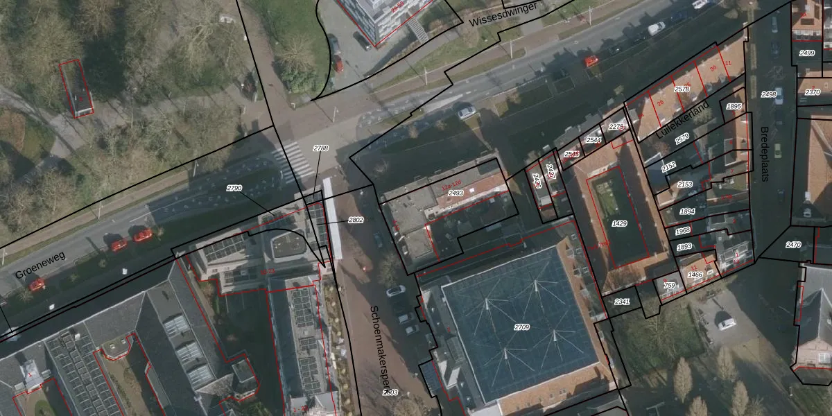 Het perceel waarop Schoenmakersperk 12 staat heeft een oppervlakte van 493 m². Dit is een groot perceel. De perceeloppervlakte wordt geregistreerd door het Kadaster. Gedetailleerde informatie over de maten van dit perceel kunt u vinden in het rapport Kadastrale kaart met maatvoering van Schoenmakersperk 12.