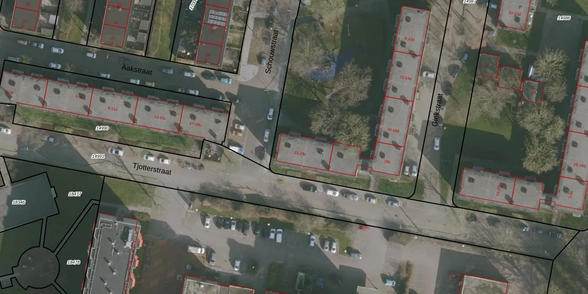 Het perceel waarop Schouwstraat 21-c staat heeft een oppervlakte van 6600 m². Dit is een zeer groot perceel. De perceeloppervlakte wordt geregistreerd door het Kadaster. Gedetailleerde informatie over de maten van dit perceel kunt u vinden in het rapport Kadastrale kaart met maatvoering van Schouwstraat 21-c.