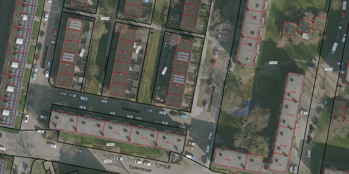 Het perceel waarop Schouwstraat 26 staat heeft een oppervlakte van 995 m². Dit is een groot perceel. De perceeloppervlakte wordt geregistreerd door het Kadaster. Gedetailleerde informatie over de maten van dit perceel kunt u vinden in het rapport Kadastrale kaart met maatvoering van Schouwstraat 26.