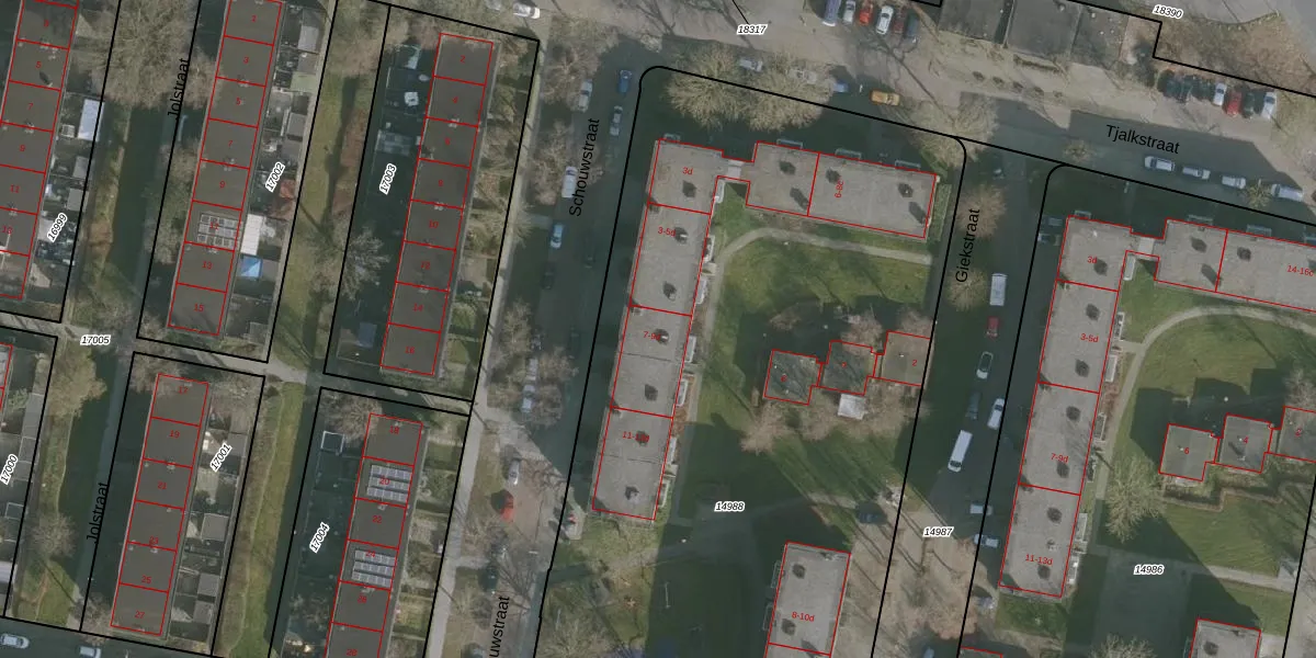 Schouwstraat 7-b is gelegen op kadastraal perceel LWD00G14988. Deze kadastrale aanduiding is uniek en wordt gebruikt door het Kadaster om eigendomsrechten en andere zakelijke rechten vast te leggen. Het perceel maakt onderdeel uit van de kadastrale gemeente Leeuwarden.