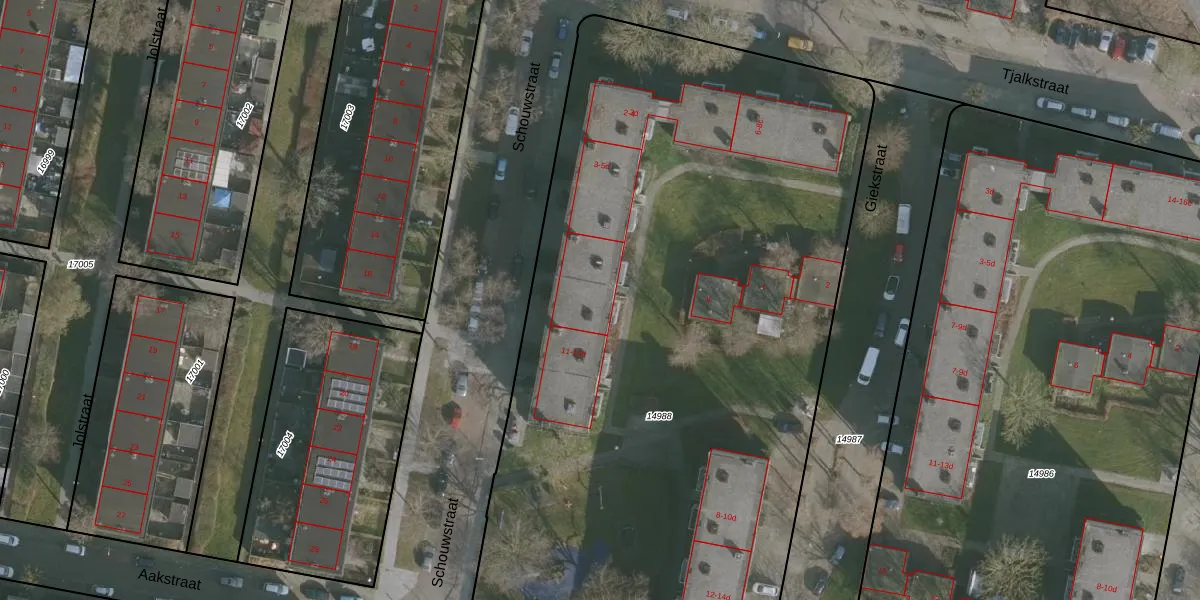 Schouwstraat 9-b is gelegen op kadastraal perceel LWD00G14988. Deze kadastrale aanduiding is uniek en wordt gebruikt door het Kadaster om eigendomsrechten en andere zakelijke rechten vast te leggen. Het perceel maakt onderdeel uit van de kadastrale gemeente Leeuwarden.