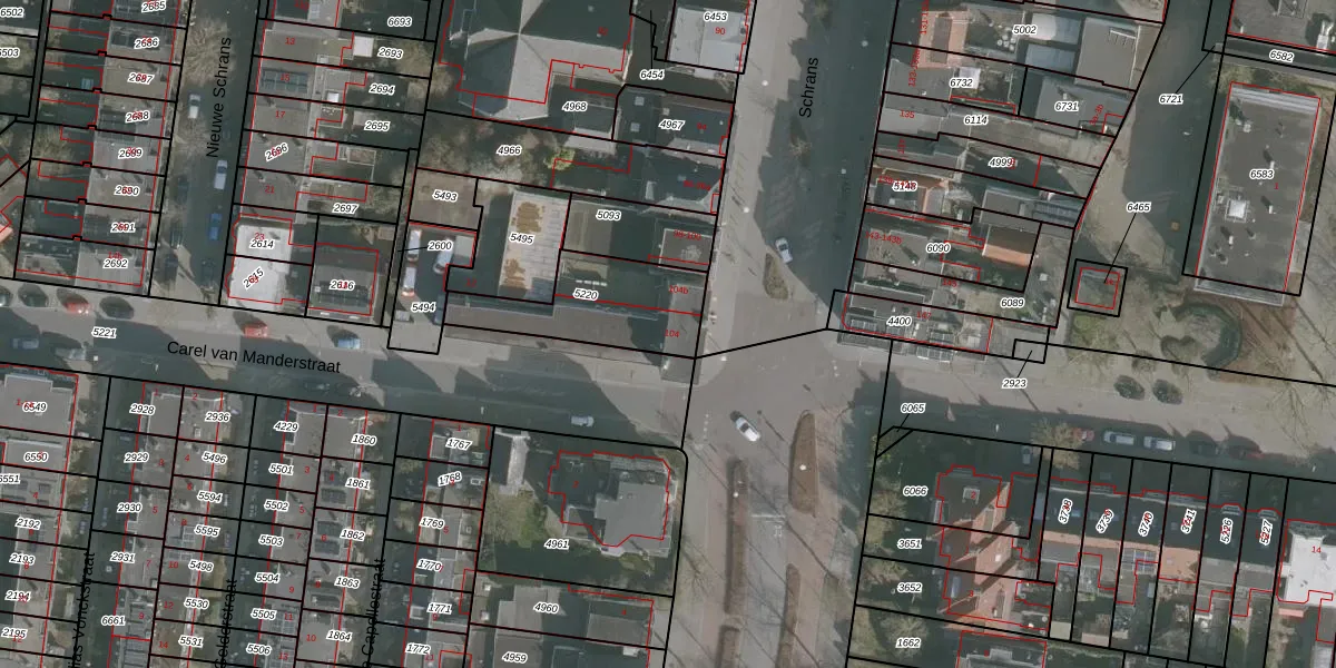 Het perceel waarop Schrans 104 staat heeft een oppervlakte van 367 m². Dit is een groot perceel. De perceeloppervlakte wordt geregistreerd door het Kadaster. Gedetailleerde informatie over de maten van dit perceel kunt u vinden in het rapport Kadastrale kaart met maatvoering van Schrans 104.