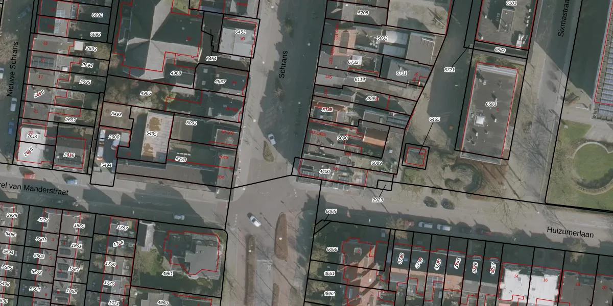 Schrans 145 is gelegen op kadastraal perceel HZM00B6089. Deze kadastrale aanduiding is uniek en wordt gebruikt door het Kadaster om eigendomsrechten en andere zakelijke rechten vast te leggen. Het perceel maakt onderdeel uit van de kadastrale gemeente Huizum.