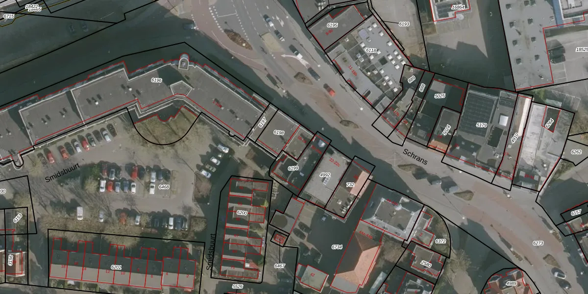 Het perceel waarop Schrans 18 staat heeft een oppervlakte van 193 m². Dit is een middelgroot perceel. De perceeloppervlakte wordt geregistreerd door het Kadaster. Gedetailleerde informatie over de maten van dit perceel kunt u vinden in het rapport Kadastrale kaart met maatvoering van Schrans 18.