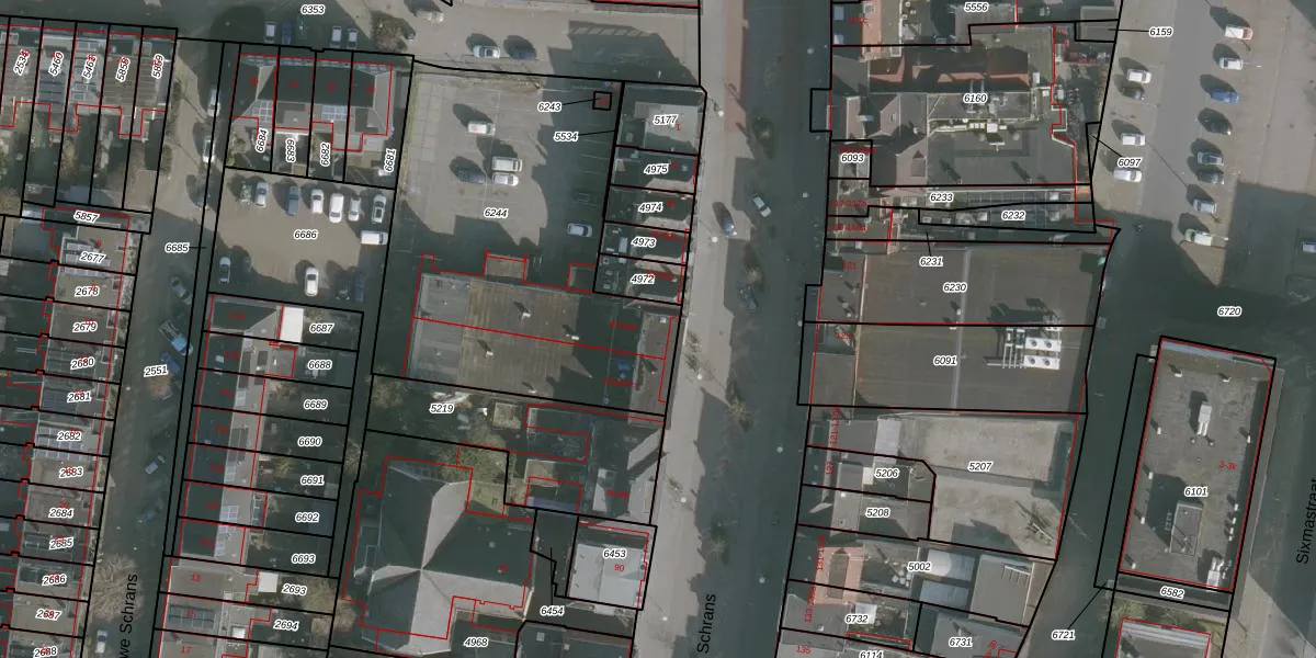 Het perceel waarop Schrans 84 staat heeft een oppervlakte van 1758 m². Dit is een zeer groot perceel. De perceeloppervlakte wordt geregistreerd door het Kadaster. Gedetailleerde informatie over de maten van dit perceel kunt u vinden in het rapport Kadastrale kaart met maatvoering van Schrans 84.