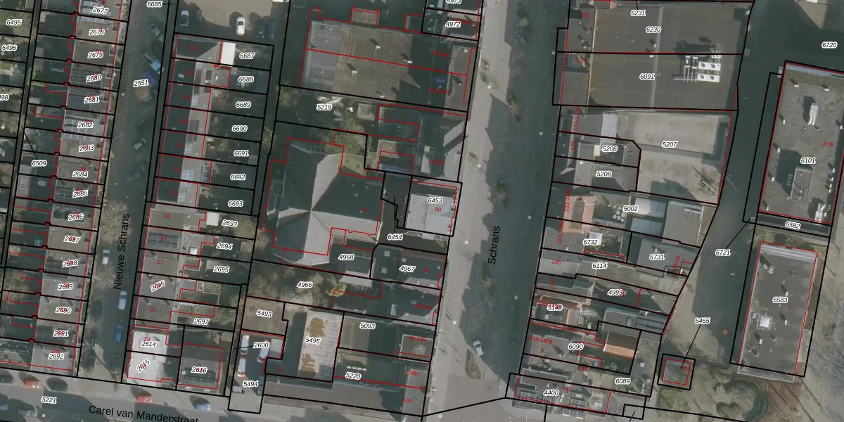 Het perceel waarop Schrans 90 staat heeft een oppervlakte van 159 m². Dit is een middelgroot perceel. De perceeloppervlakte wordt geregistreerd door het Kadaster. Gedetailleerde informatie over de maten van dit perceel kunt u vinden in het rapport Kadastrale kaart met maatvoering van Schrans 90.