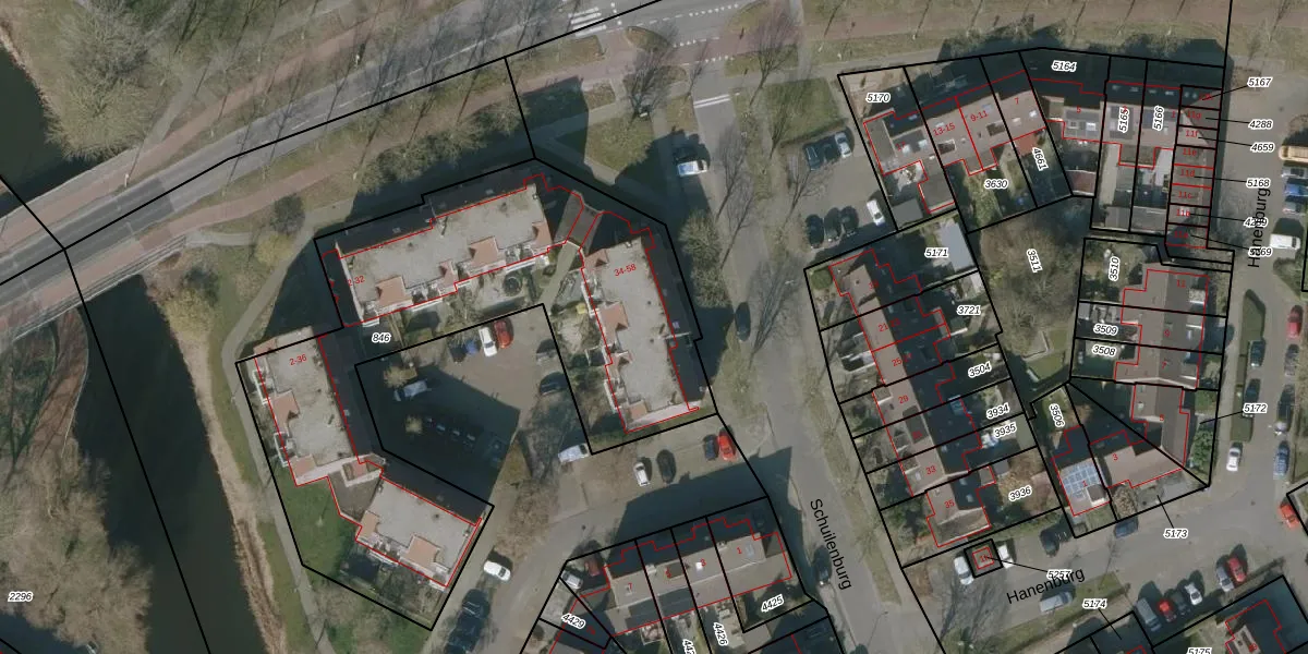 Het perceel waarop Schuilenburg 54 staat heeft een oppervlakte van 2360 m². Dit is een zeer groot perceel. De perceeloppervlakte wordt geregistreerd door het Kadaster. Gedetailleerde informatie over de maten van dit perceel kunt u vinden in het rapport Kadastrale kaart met maatvoering van Schuilenburg 54.
