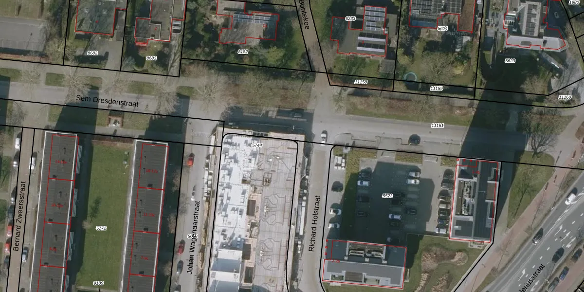 Het perceel waarop Sem Dresdenstraat 47 staat heeft een oppervlakte van 1665 m². Dit is een zeer groot perceel. De perceeloppervlakte wordt geregistreerd door het Kadaster. Gedetailleerde informatie over de maten van dit perceel kunt u vinden in het rapport Kadastrale kaart met maatvoering van Sem Dresdenstraat 47.