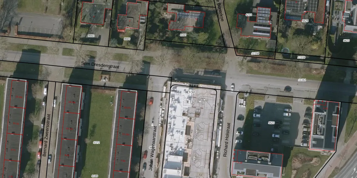Het perceel waarop Sem Dresdenstraat 71 staat heeft een oppervlakte van 1665 m². Dit is een zeer groot perceel. De perceeloppervlakte wordt geregistreerd door het Kadaster. Gedetailleerde informatie over de maten van dit perceel kunt u vinden in het rapport Kadastrale kaart met maatvoering van Sem Dresdenstraat 71.