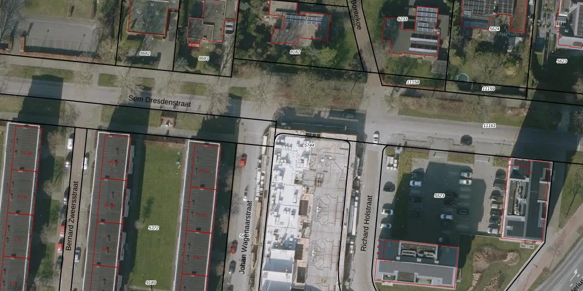 Het perceel waarop Sem Dresdenstraat 97 staat heeft een oppervlakte van 1665 m². Dit is een zeer groot perceel. De perceeloppervlakte wordt geregistreerd door het Kadaster. Gedetailleerde informatie over de maten van dit perceel kunt u vinden in het rapport Kadastrale kaart met maatvoering van Sem Dresdenstraat 97.