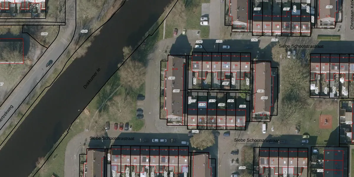 Het perceel waarop Siebe Schootstrastraat 36 staat heeft een oppervlakte van 530 m². Dit is een groot perceel. De perceeloppervlakte wordt geregistreerd door het Kadaster. Gedetailleerde informatie over de maten van dit perceel kunt u vinden in het rapport Kadastrale kaart met maatvoering van Siebe Schootstrastraat 36.