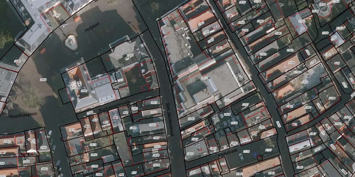 Het perceel waarop Sint Jacobsstraat 26-v staat heeft een oppervlakte van 1589 m². Dit is een zeer groot perceel. De perceeloppervlakte wordt geregistreerd door het Kadaster. Gedetailleerde informatie over de maten van dit perceel kunt u vinden in het rapport Kadastrale kaart met maatvoering van Sint Jacobsstraat 26-v.