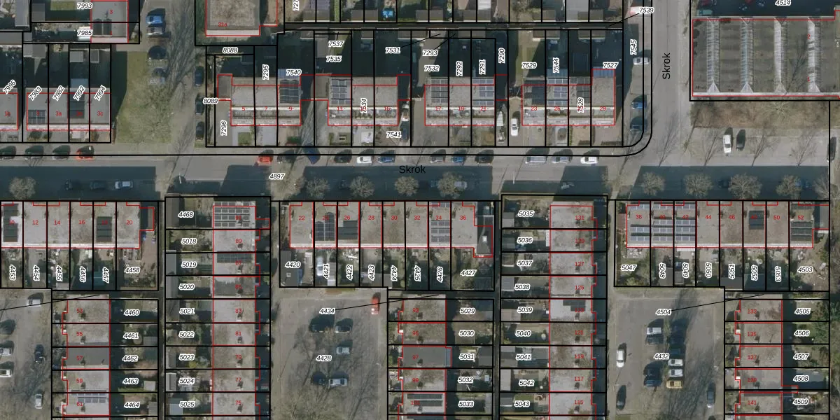 Het perceel waarop Skrok 32 staat heeft een oppervlakte van 117 m². Dit is een middelgroot perceel. De perceeloppervlakte wordt geregistreerd door het Kadaster. Gedetailleerde informatie over de maten van dit perceel kunt u vinden in het rapport Kadastrale kaart met maatvoering van Skrok 32.