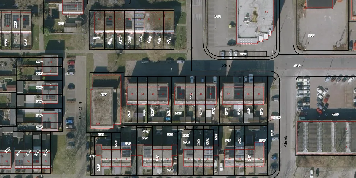 Het perceel waarop Skrok 45 staat heeft een oppervlakte van 205 m². Dit is een middelgroot perceel. De perceeloppervlakte wordt geregistreerd door het Kadaster. Gedetailleerde informatie over de maten van dit perceel kunt u vinden in het rapport Kadastrale kaart met maatvoering van Skrok 45.