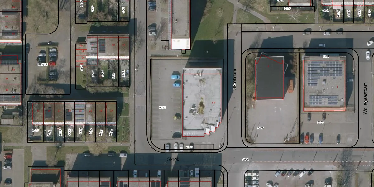 Het perceel waarop Skrokdam 3-a staat heeft een oppervlakte van 1823 m². Dit is een zeer groot perceel. De perceeloppervlakte wordt geregistreerd door het Kadaster. Gedetailleerde informatie over de maten van dit perceel kunt u vinden in het rapport Kadastrale kaart met maatvoering van Skrokdam 3-a.