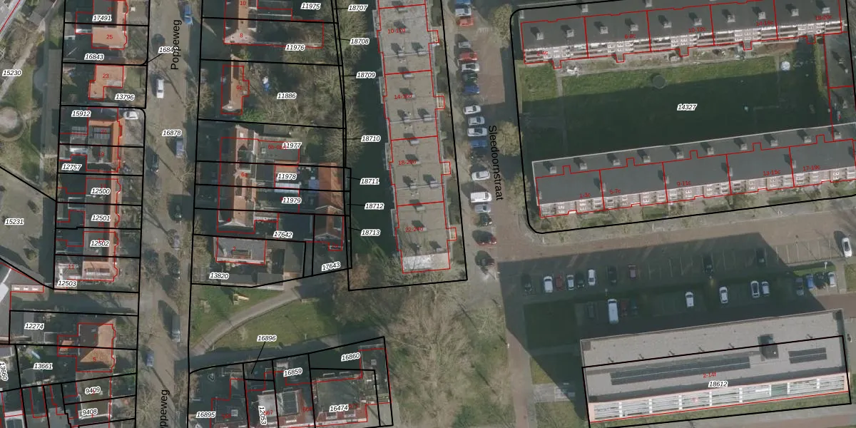 Het perceel waarop het adres ligt is LWD00-G-18703. De afkorting 'LWD00' staat voor kadastrale gemeente Leeuwarden. De gemiddelde perceeloppervlakte in de kadastrale gemeente Leeuwarden is 1522,59 m². Dit perceel is met zijn 2430 m² dus groter dan gemiddeld. Het kleinste perceel in de kadastrale gemeente is 0 m² groot. De grootste perceeloppervlakte is 1,54 km². Op het perceel zijn 48 adressen aanwezig. De huidige grenzen van het perceel zijn digitaal in de Basisregistratie Kadaster (BRK) geregistreerd op 20-04-2026.