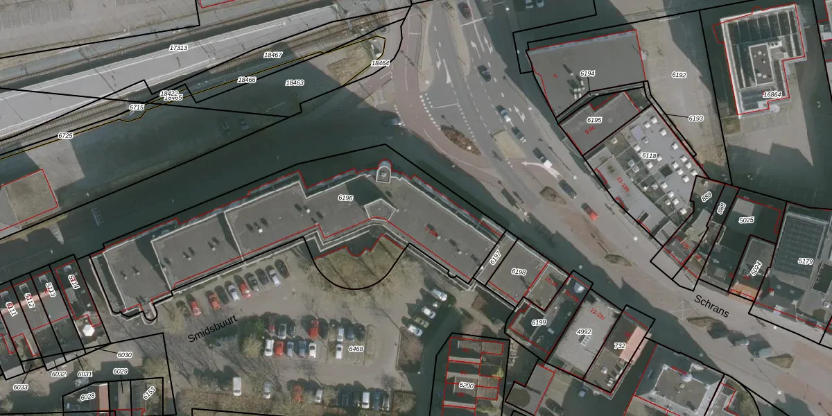Smidsbuurt 18 is gelegen op kadastraal perceel HZM00B6196. Deze kadastrale aanduiding is uniek en wordt gebruikt door het Kadaster om eigendomsrechten en andere zakelijke rechten vast te leggen. Het perceel maakt onderdeel uit van de kadastrale gemeente Huizum.