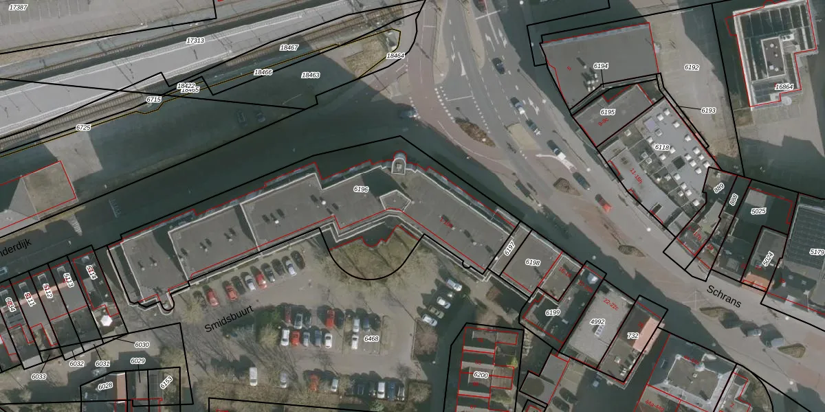 Smidsbuurt 25 is gelegen op kadastraal perceel HZM00B6196. Deze kadastrale aanduiding is uniek en wordt gebruikt door het Kadaster om eigendomsrechten en andere zakelijke rechten vast te leggen. Het perceel maakt onderdeel uit van de kadastrale gemeente Huizum.