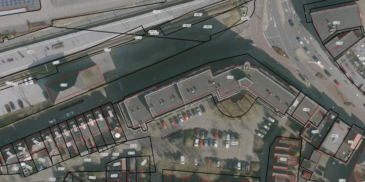 Het perceel waarop Smidsbuurt 39 staat heeft een oppervlakte van 2014 m². Dit is een zeer groot perceel. De perceeloppervlakte wordt geregistreerd door het Kadaster. Gedetailleerde informatie over de maten van dit perceel kunt u vinden in het rapport Kadastrale kaart met maatvoering van Smidsbuurt 39.