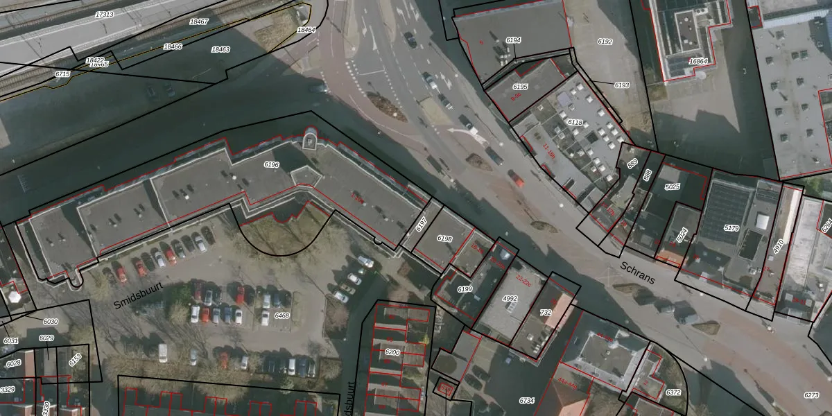 Het adres is gelegen op perceel 6196 in de sectie B en de kadastrale gemeente Huizum. De kadastrale aanduiding is aldus HZM00-B-6196. De oppervlakte van het perceel is 2014 m². Dat is groter dan gemiddeld in Huizum, waar de gemiddelde perceeloppervlakte op 1505,51 m² ligt. De grootste perceeloppervlakte in de kadastrale gemeente is 75,1 ha. De kleinste oppervlakte bedraagt 0 m². Er zijn 73 adressen aanwezig op het perceel. In de Basisregistratie Kadaster (BRK) werden de grenzen van het perceel geregistreerd op 15-10-2002.