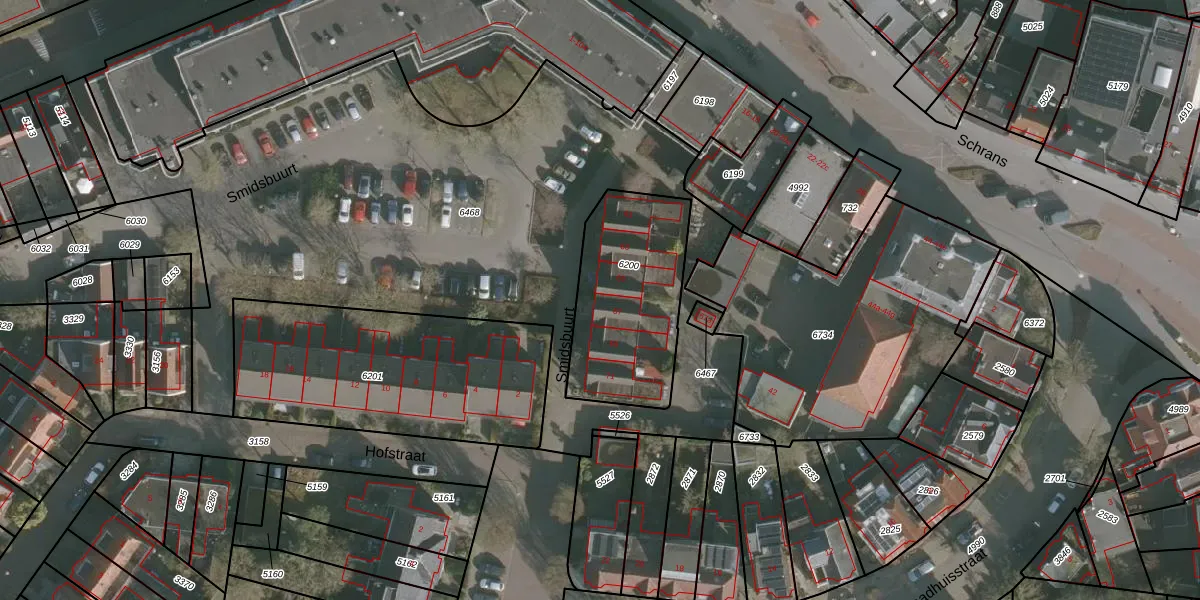 Het perceel waarop Smidsbuurt 67 staat heeft een oppervlakte van 599 m². Dit is een groot perceel. De perceeloppervlakte wordt geregistreerd door het Kadaster. Gedetailleerde informatie over de maten van dit perceel kunt u vinden in het rapport Kadastrale kaart met maatvoering van Smidsbuurt 67.