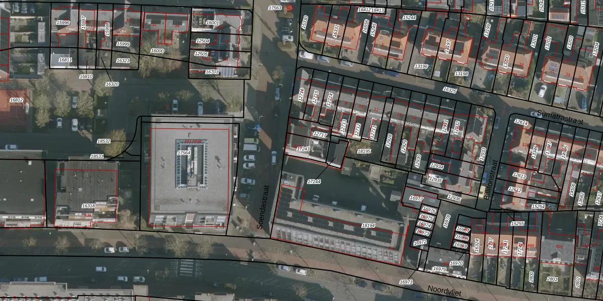 Het perceel waarop Soendastraat 6-b staat heeft een oppervlakte van 102 m². Dit is een middelgroot perceel. De perceeloppervlakte wordt geregistreerd door het Kadaster. Gedetailleerde informatie over de maten van dit perceel kunt u vinden in het rapport Kadastrale kaart met maatvoering van Soendastraat 6-b.