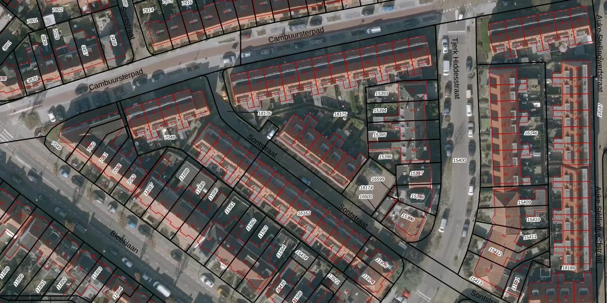 Het perceel waarop Sontstraat 3 staat heeft een oppervlakte van 1930 m². Dit is een zeer groot perceel. De perceeloppervlakte wordt geregistreerd door het Kadaster. Gedetailleerde informatie over de maten van dit perceel kunt u vinden in het rapport Kadastrale kaart met maatvoering van Sontstraat 3.