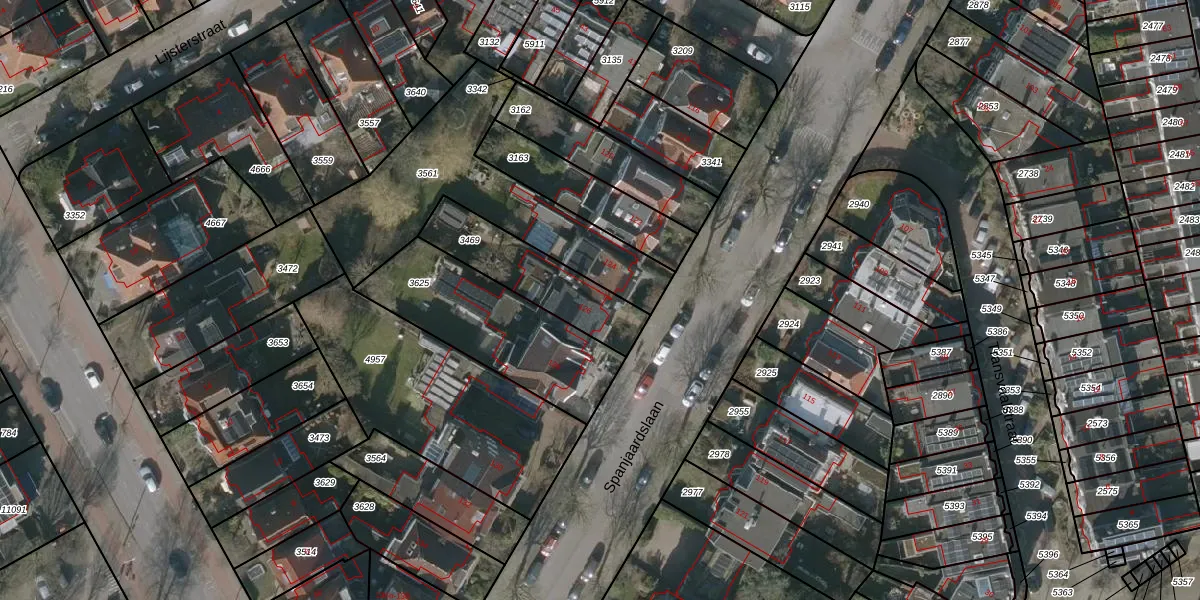 Het perceel waarop Spanjaardslaan 126 staat heeft een oppervlakte van 325 m². Dit is een groot perceel. De perceeloppervlakte wordt geregistreerd door het Kadaster. Gedetailleerde informatie over de maten van dit perceel kunt u vinden in het rapport Kadastrale kaart met maatvoering van Spanjaardslaan 126.