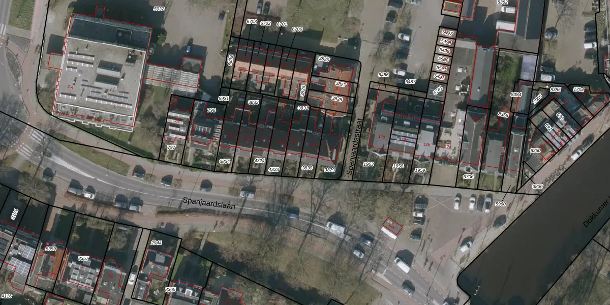 Spanjaardslaan 16 is gelegen op kadastraal perceel LWD00E3830. Deze kadastrale aanduiding is uniek en wordt gebruikt door het Kadaster om eigendomsrechten en andere zakelijke rechten vast te leggen. Het perceel maakt onderdeel uit van de kadastrale gemeente Leeuwarden.