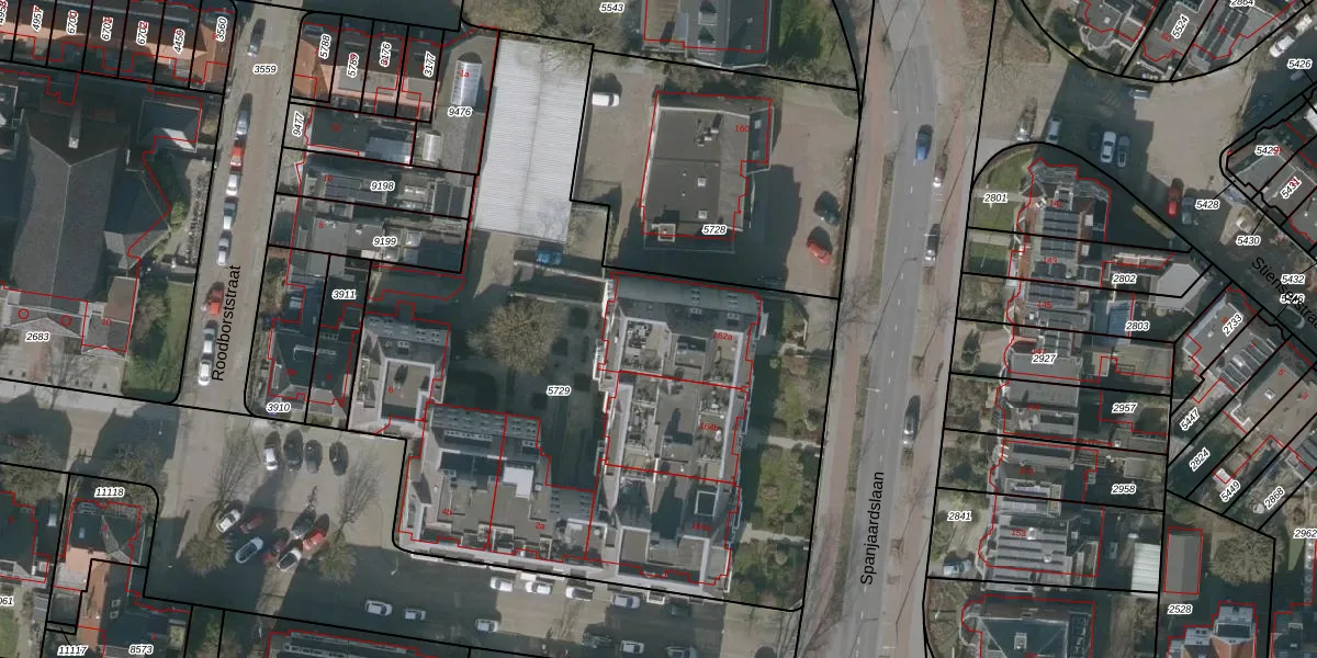 Het perceel waarop Spanjaardslaan 162-f staat heeft een oppervlakte van 3750 m². Dit is een zeer groot perceel. De perceeloppervlakte wordt geregistreerd door het Kadaster. Gedetailleerde informatie over de maten van dit perceel kunt u vinden in het rapport Kadastrale kaart met maatvoering van Spanjaardslaan 162-f.