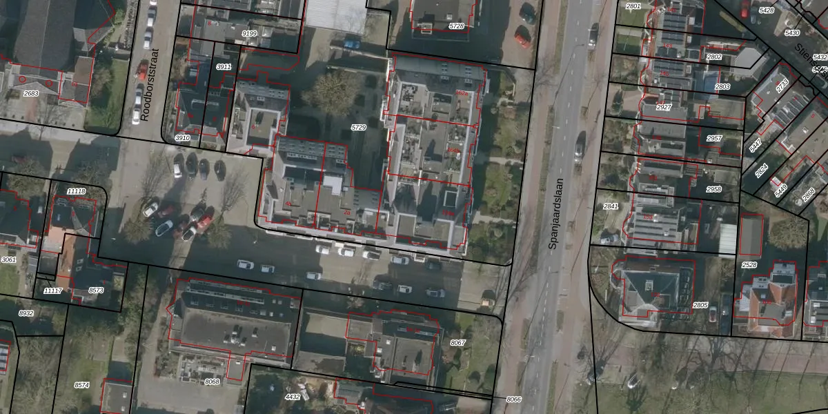 Het perceel waarop Spanjaardslaan 166-c staat heeft een oppervlakte van 3750 m². Dit is een zeer groot perceel. De perceeloppervlakte wordt geregistreerd door het Kadaster. Gedetailleerde informatie over de maten van dit perceel kunt u vinden in het rapport Kadastrale kaart met maatvoering van Spanjaardslaan 166-c.