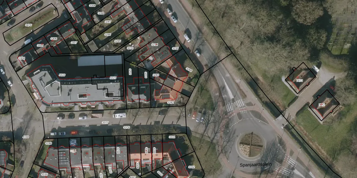 Het perceel waarop Spanjaardsplein 1 staat heeft een oppervlakte van 169 m². Dit is een middelgroot perceel. De perceeloppervlakte wordt geregistreerd door het Kadaster. Gedetailleerde informatie over de maten van dit perceel kunt u vinden in het rapport Kadastrale kaart met maatvoering van Spanjaardsplein 1.