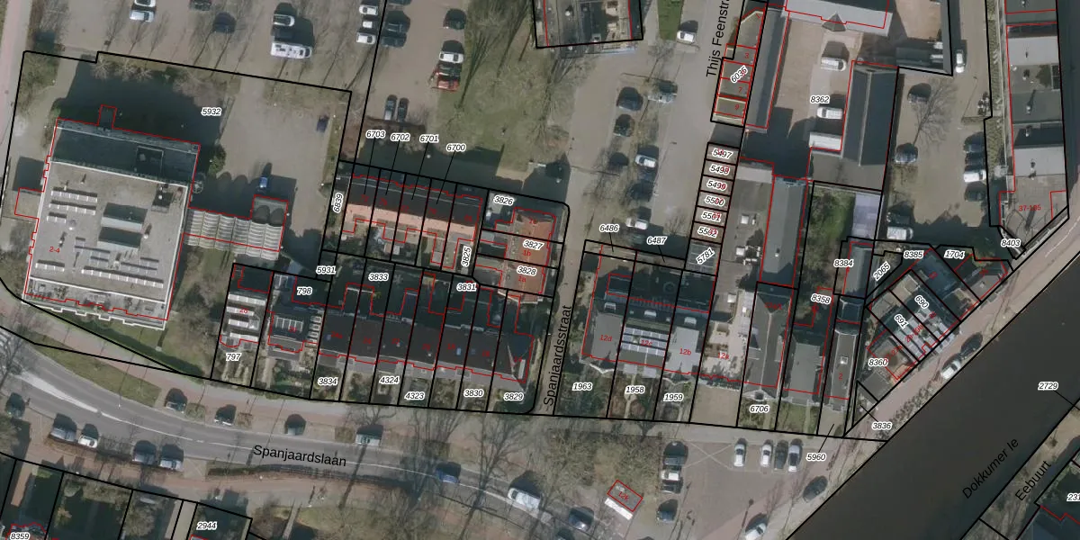 Gebruik de zoekbalk of klik op een perceel voor informatie over de adressen binnen dit perceel.