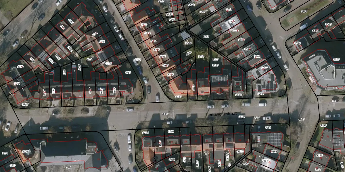 Gebruik de zoekbalk of klik op een perceel voor informatie over de adressen binnen dit perceel.