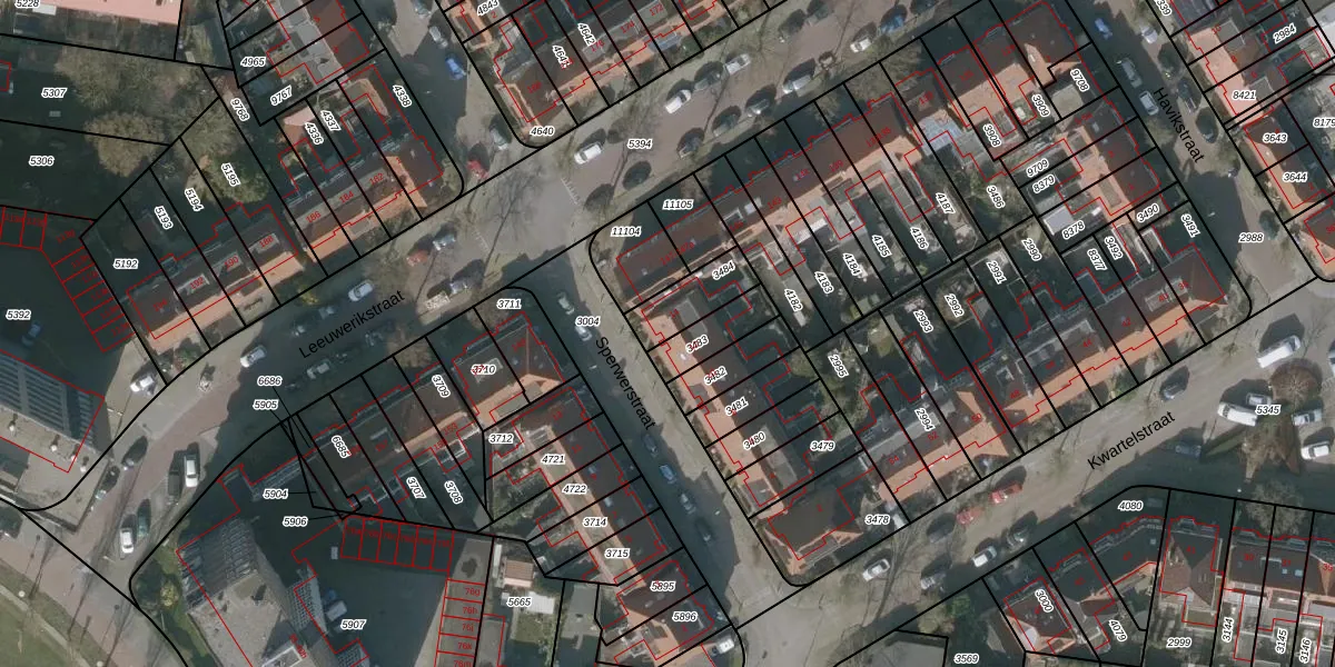 Gebruik de zoekbalk of klik op een perceel voor informatie over de adressen binnen dit perceel.