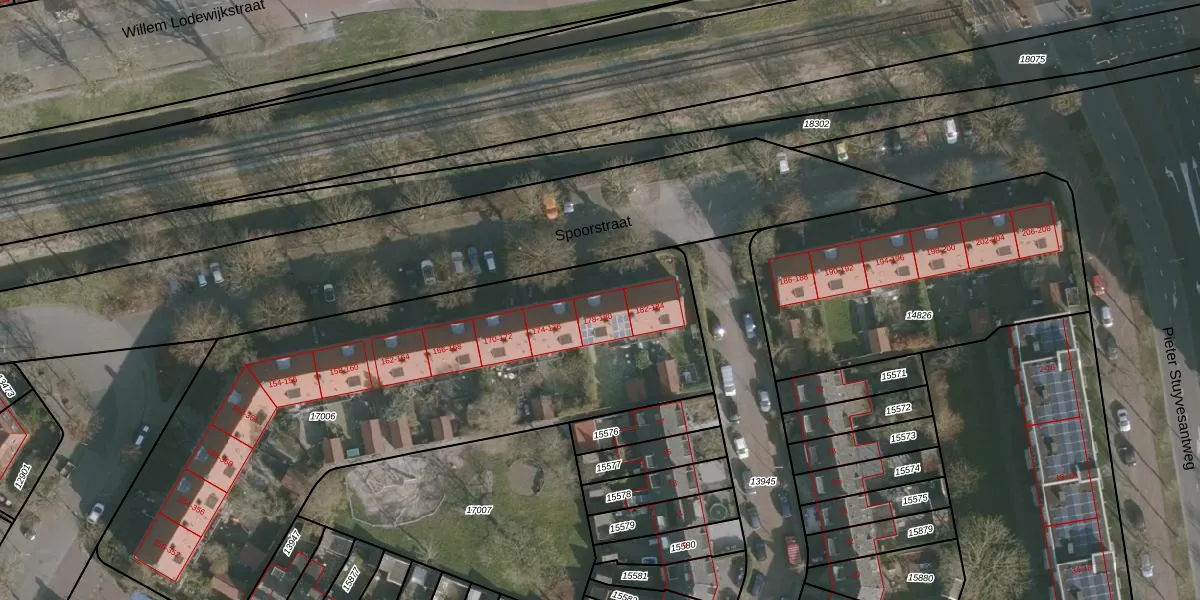 Het perceel waarop Spoorstraat 178 staat heeft een oppervlakte van 2775 m². Dit is een zeer groot perceel. De perceeloppervlakte wordt geregistreerd door het Kadaster. Gedetailleerde informatie over de maten van dit perceel kunt u vinden in het rapport Kadastrale kaart met maatvoering van Spoorstraat 178.