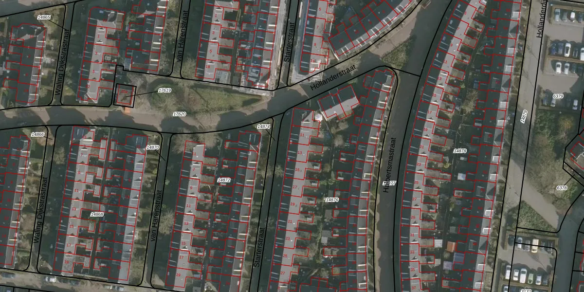 Starterstraat 13 is gelegen op kadastraal perceel LWD00G14876. Deze kadastrale aanduiding is uniek en wordt gebruikt door het Kadaster om eigendomsrechten en andere zakelijke rechten vast te leggen. Het perceel maakt onderdeel uit van de kadastrale gemeente Leeuwarden.