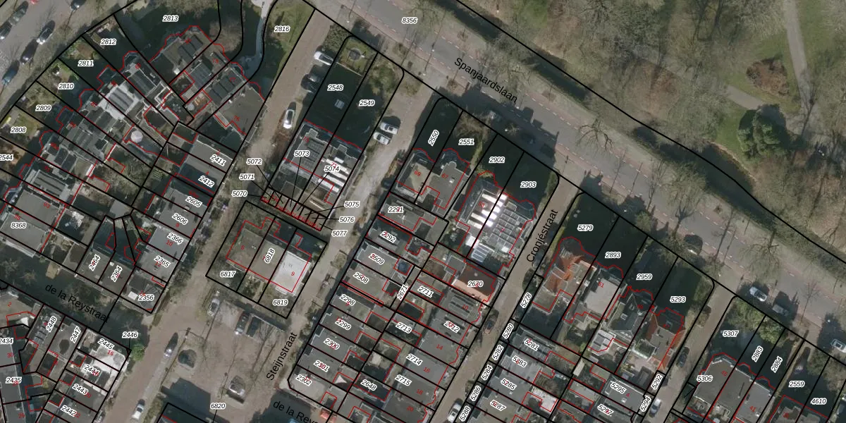 Gebruik de zoekbalk of klik op een perceel voor informatie over de adressen binnen dit perceel.