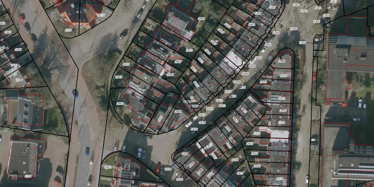 Gebruik de zoekbalk of klik op een perceel voor informatie over de adressen binnen dit perceel.