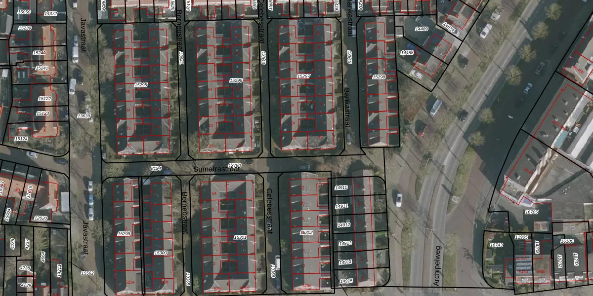 Sumatrastraat 43 is gelegen op kadastraal perceel LWD00G15297. Deze kadastrale aanduiding is uniek en wordt gebruikt door het Kadaster om eigendomsrechten en andere zakelijke rechten vast te leggen. Het perceel maakt onderdeel uit van de kadastrale gemeente Leeuwarden.